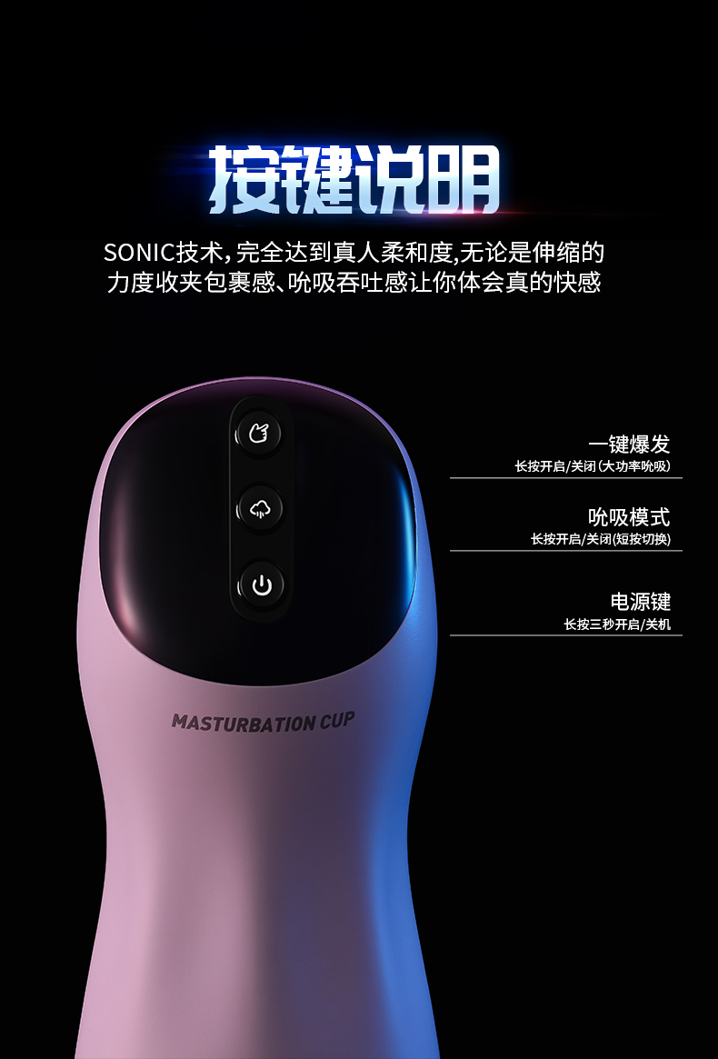 3频吮吸、美女语音互动、智能加温、10频震动、一键爆发、USB充电