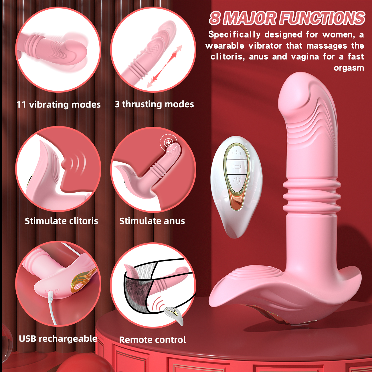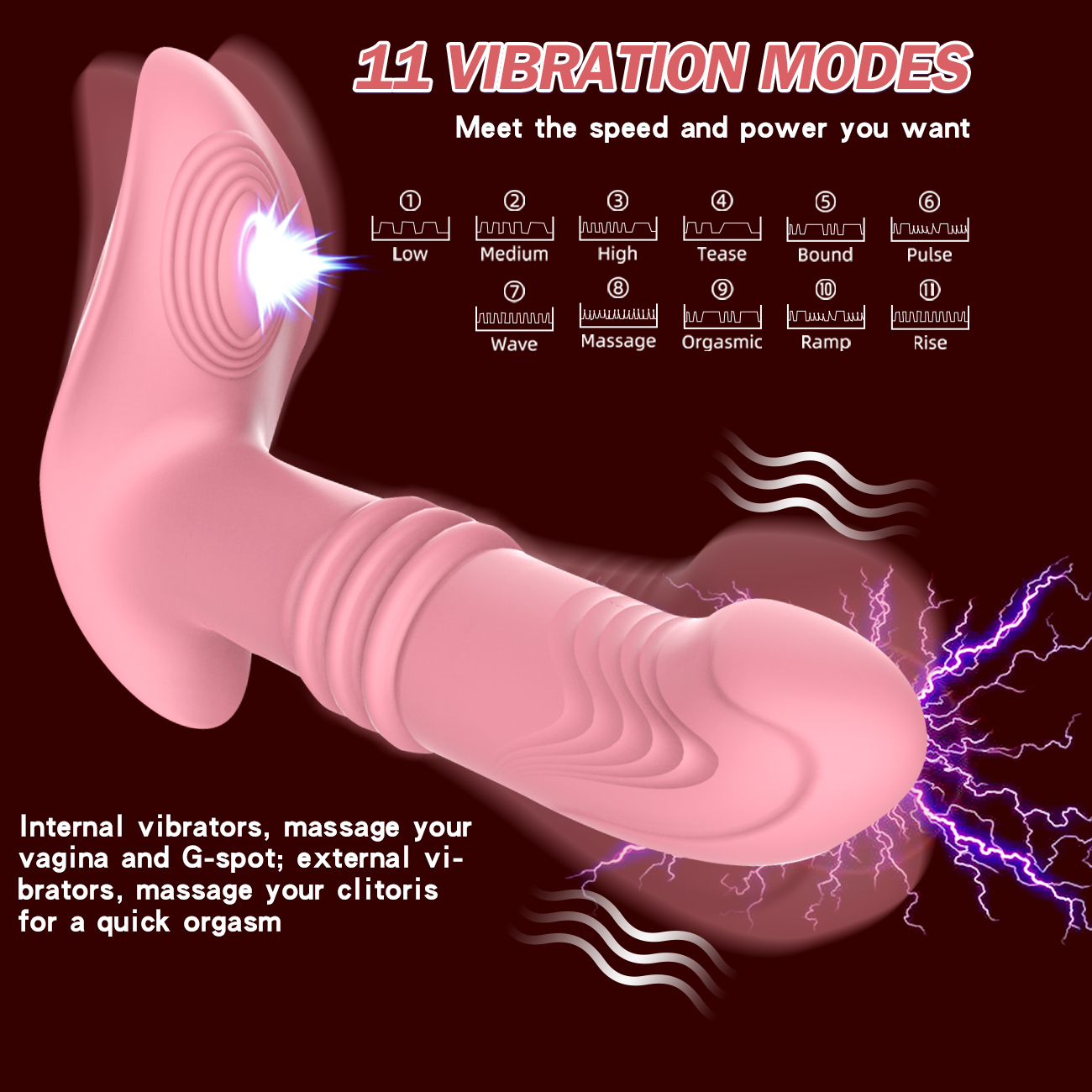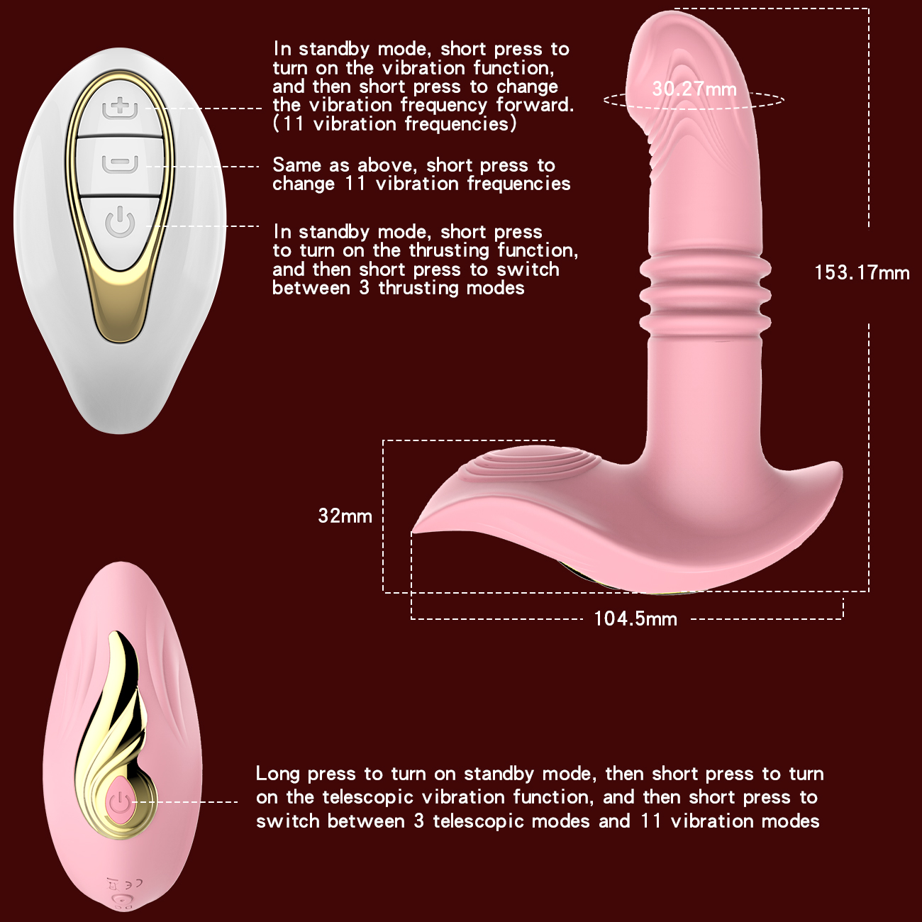 3频伸缩、11频震动、女性穿戴、无线遥控、USB充电