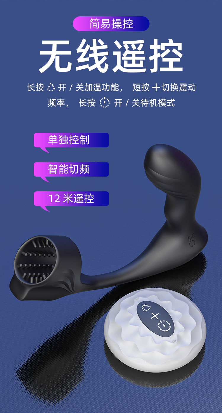 7频震动、锁精、智能加温、无线遥控、前列腺按摩